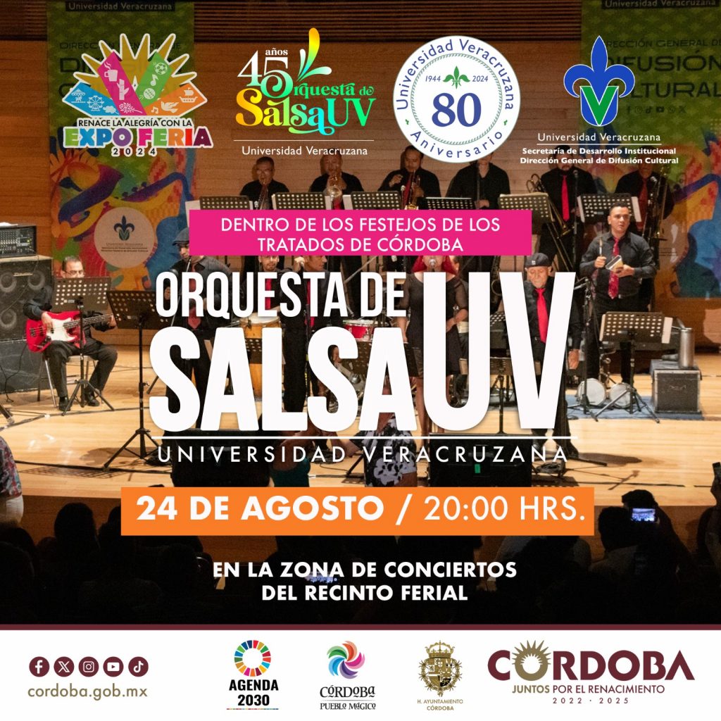 La celebración del 203 Aniversario de la Firma de los Tratados de Córdoba cerrará con la presentación de la Orquesta de Salsa de la Universidad Veracruzana, en el recinto de conciertos a partir de las 8 de la noche.