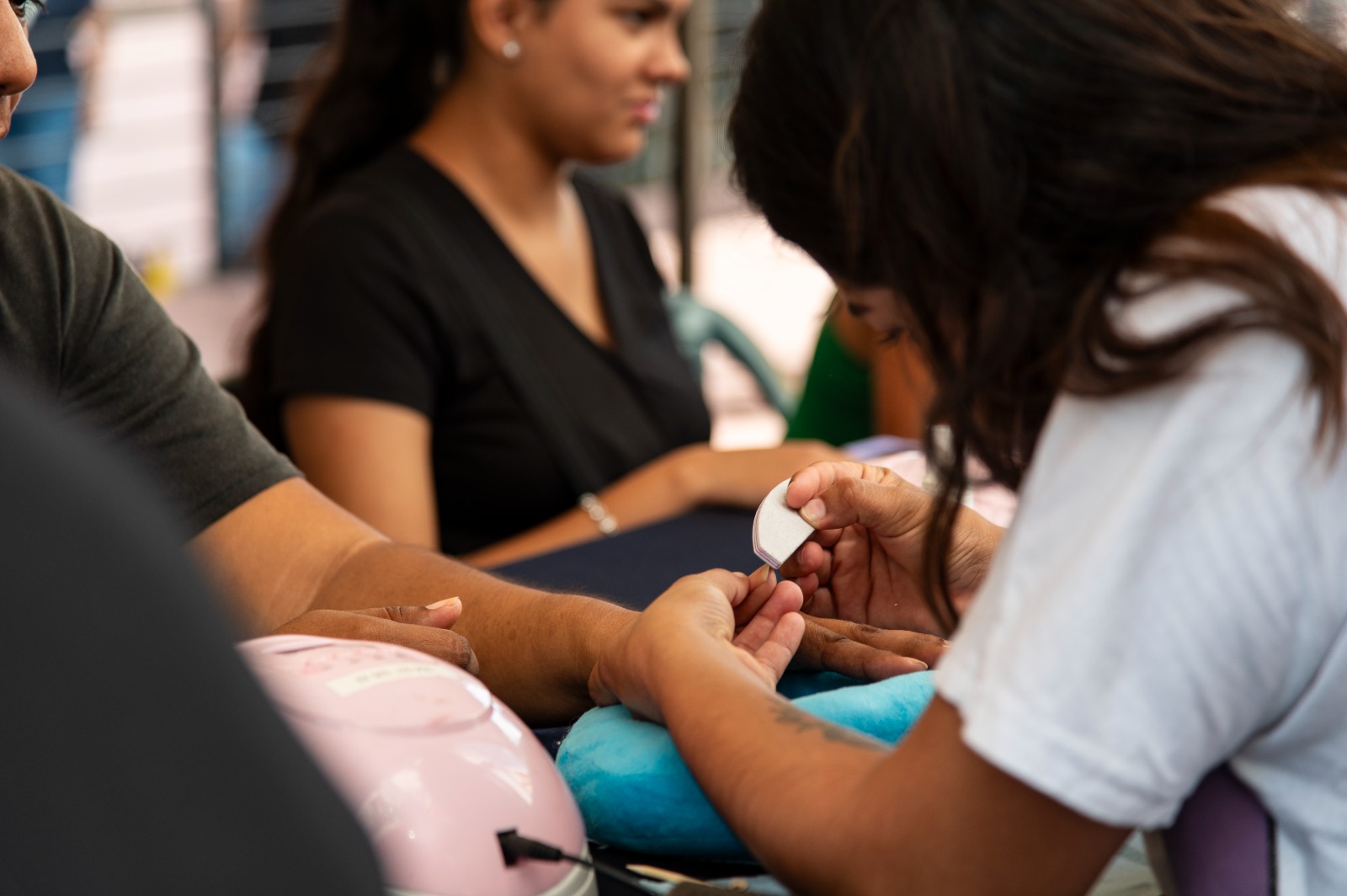 En la calle del arte del centro histórico desde las 9 de la mañana se atendió en aplicación de uñas acrílicas, uñas con Gelish, aplicación de pestañas, rizado de pestañas y cortes de cabello.