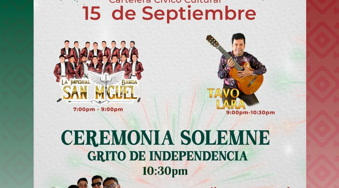 Cabe señalar que la ceremonia solemne del Grito de Independencia, por parte del presidente municipal Gerardo Rosales Victoria se llevará a cabo a las 22:30 horas.