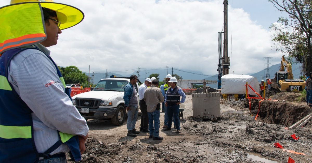 En el lugar ubicado en el kilómetro 274 + 350 de la autopista Ciudad Mendoza, se reunieron el alcalde Juan Martínez Flores, la directora de Hidrosistema, Maria del Rosario Palafox, Mario Alberto Pérez Nava, resiente de obra de CAPUFE Oscar Trujillo Roldán, Subdirector de planeaciones y proyectos, Miguel Hernández, jefe del departamento de Agua Potable y Adrián Martínez Escandón, encargado de la unidad Jurídica de Hidrosistema.