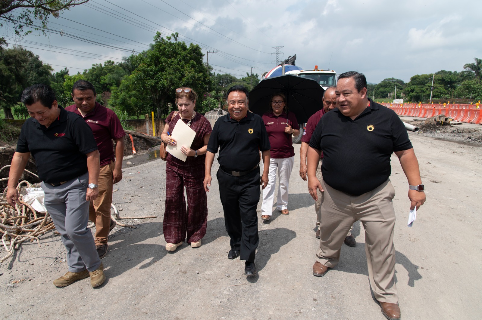 En el lugar ubicado en el kilómetro 274 + 350 de la autopista Ciudad Mendoza, se reunieron el alcalde Juan Martínez Flores, la directora de Hidrosistema, Maria del Rosario Palafox, Mario Alberto Pérez Nava, resiente de obra de CAPUFE Oscar Trujillo Roldán, Subdirector de planeaciones y proyectos, Miguel Hernández, jefe del departamento de Agua Potable y Adrián Martínez Escandón, encargado de la unidad Jurídica de Hidrosistema.