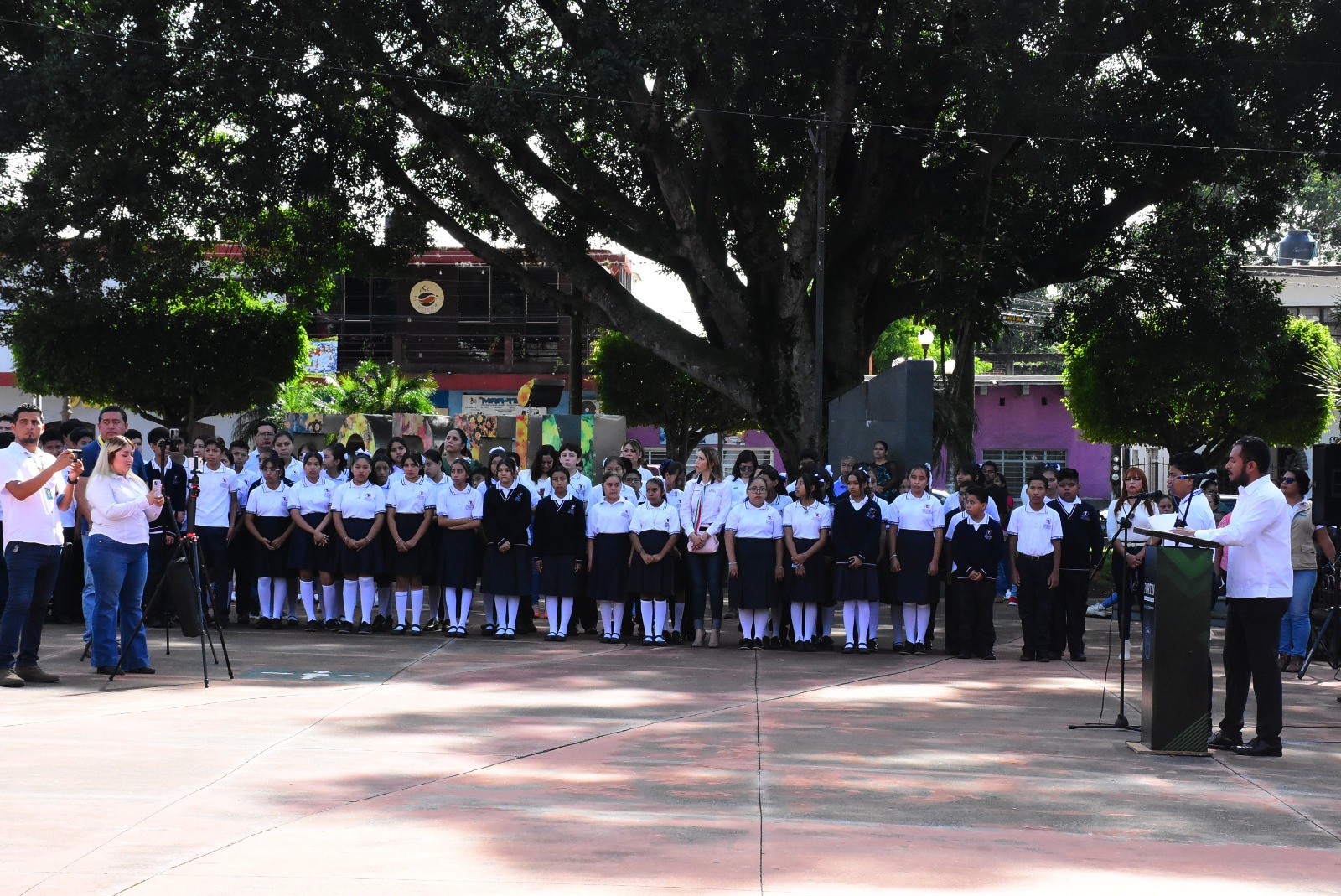 Durante el evento estuvieron presentes la Síndica municipal Elizabeth Navarro Gínez, el Secretario del Ayuntamiento Osmar Eduardo Martínez Vásquez, el regidor Primero Orlando Rosas Sánchez la regidora Segunda Ixchel Zitlally Espíritu Apolinar, la regidora Tercera Guadalupe Tepepa García y el Regidor Cuarto Juan Carlos Santiago Sánchez, asimismo Lic. Yolanda Burgos Arrollo enlace del área de Prevención del Delito de la Delegación VII Fuerza Civil, la Prof. Dolores López Ventura directora de la Telesecundaria Antonio Ruiz Galindo.