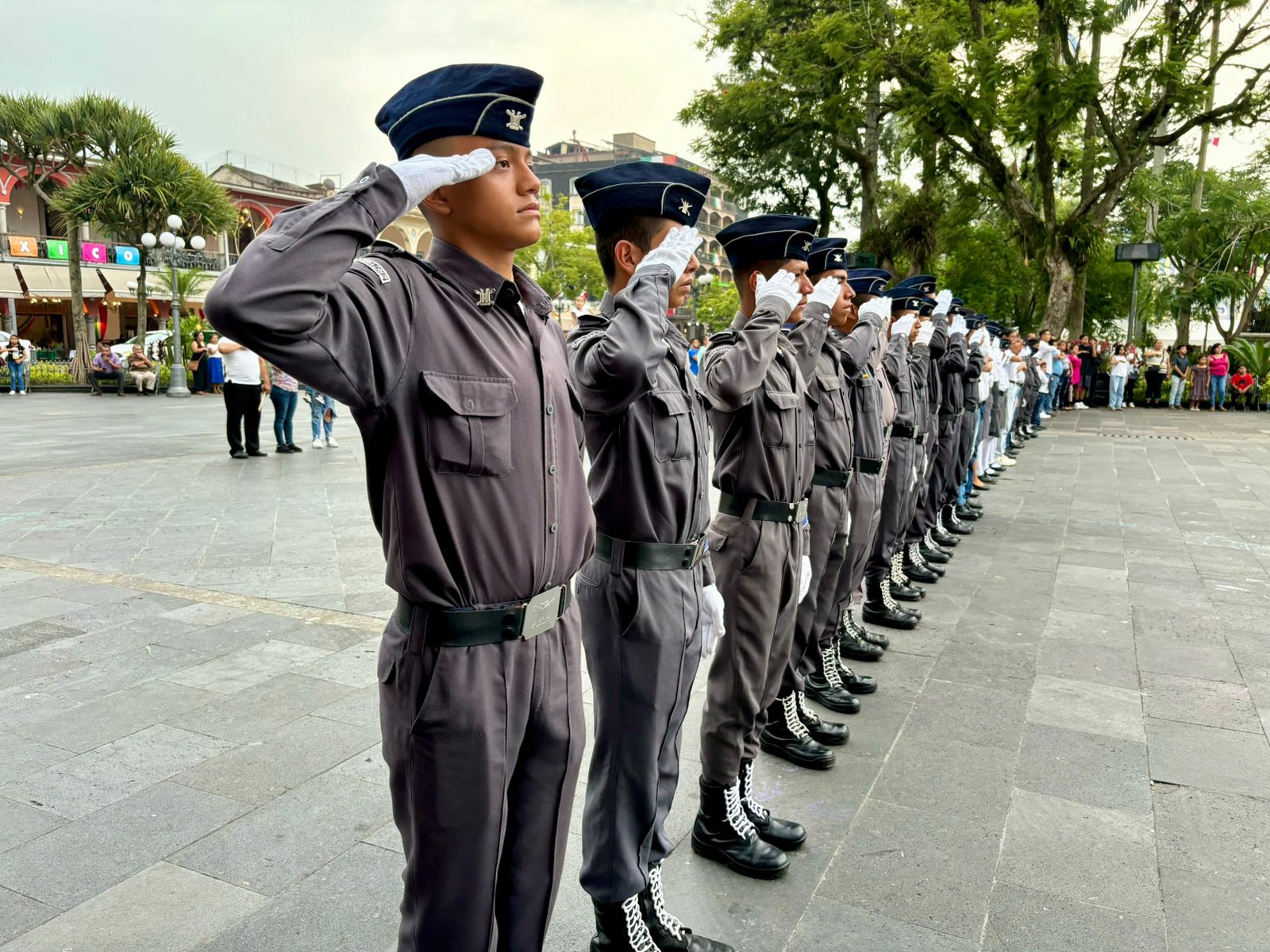 Ante la mirada de cordobeses y visitantes, así como de personal del Ayuntamiento y regidores, la escolta de mujeres del Pentatlón Militarizado universitario entregó al alcalde el Lábaro Patrio en un acto de honor y respeto a los colores de nuestra bandera.