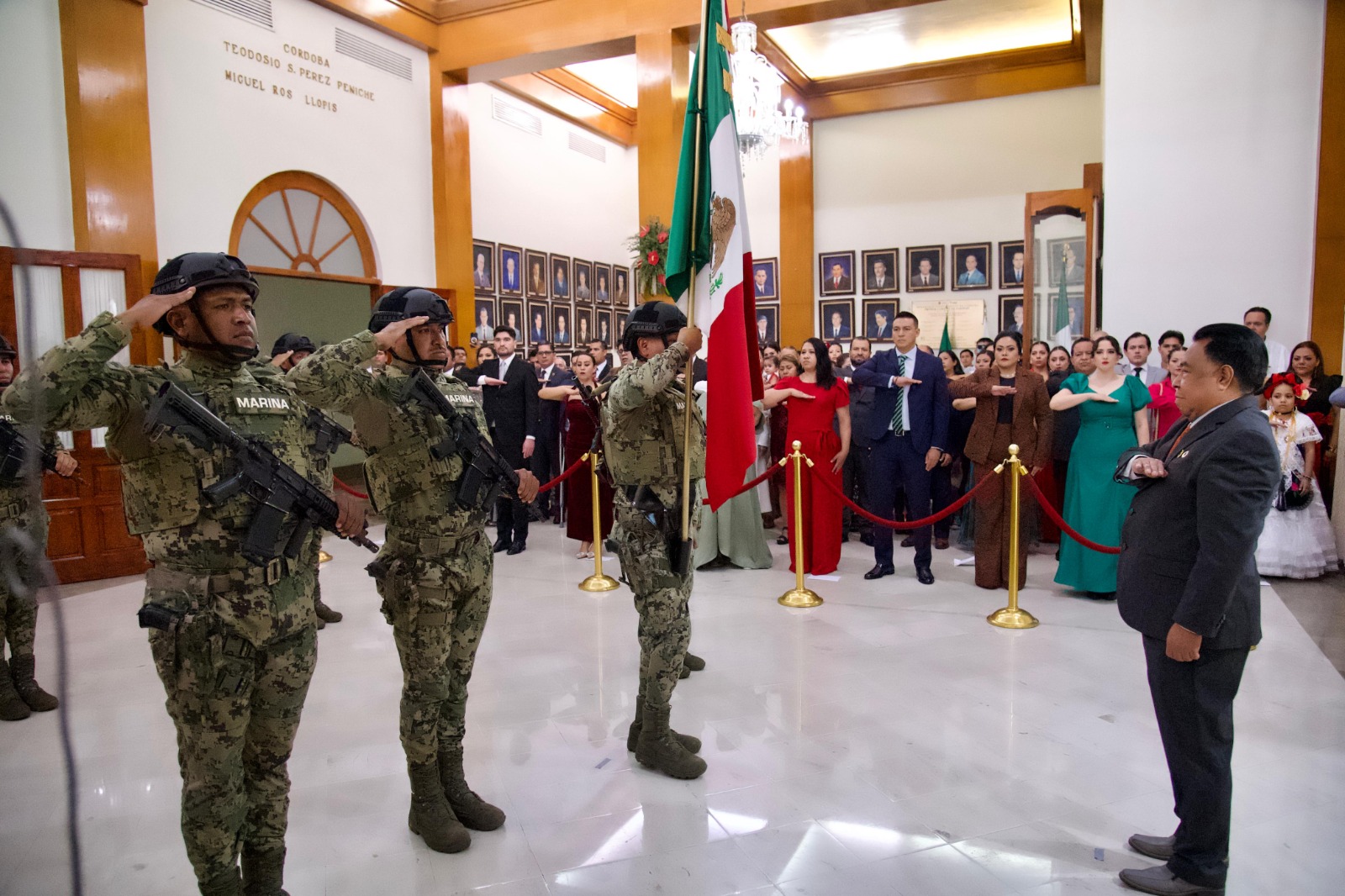 El momento solemne de la noche, cerca de las 23:00 horas fue secundado por los ciudadanos cuando el alcalde de Córdoba acompañado de sus ediles e invitados especiales llevo a cabo el tradicional e importante grito de independencia de México.