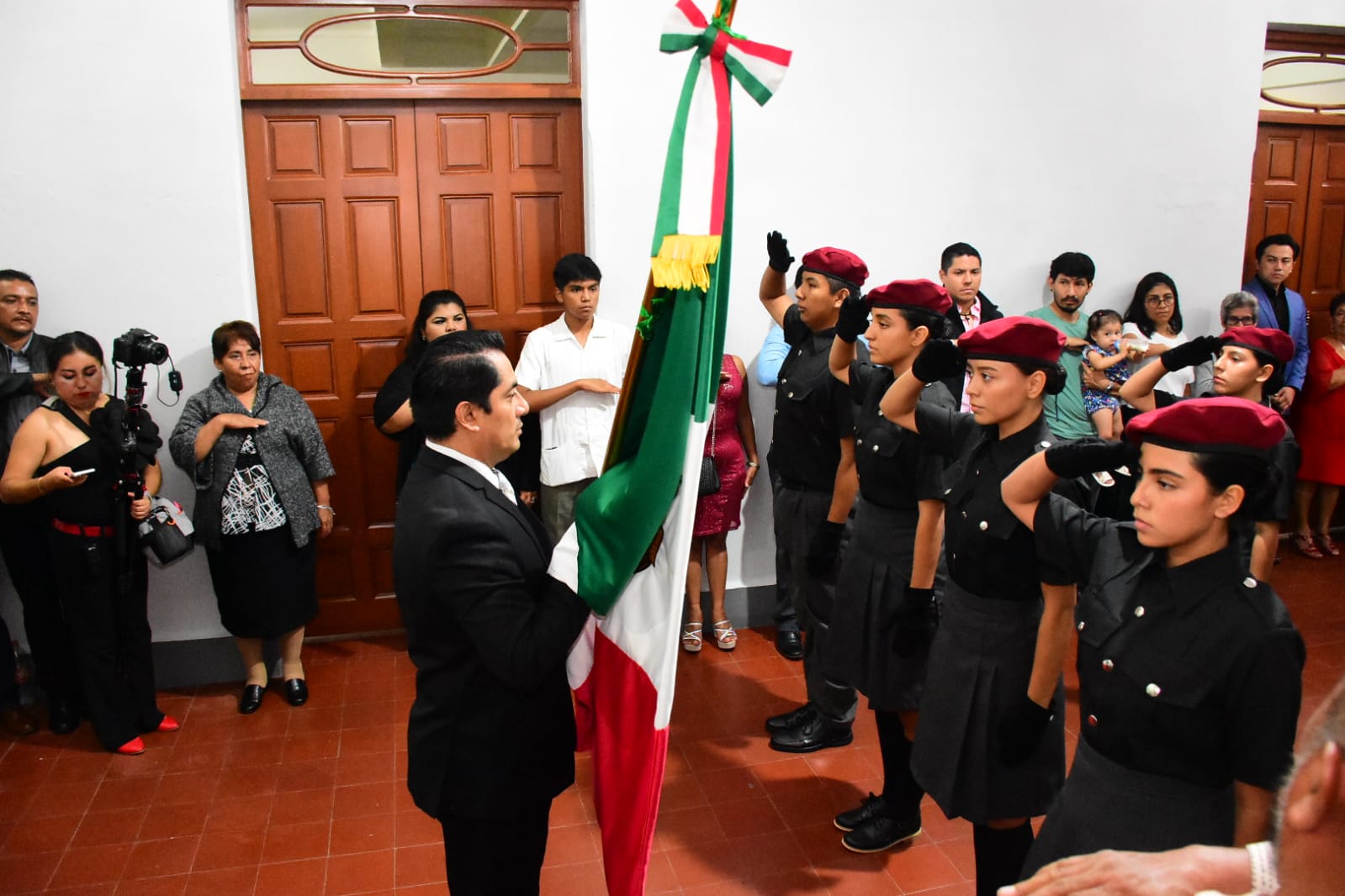 La escolta y banda de guerra del Cobaev 56 Fortín, entregó el lábaro patrio al munícipe para llevar a cabo la Ceremonia Solemne, en la cual estuvieron presentes los regidores Orlando Rosas Sánchez, Ixchel Zitlally Espíritu Apolinar, Guadalupe Tepepa García, Juan Carlos Santiago Sánchez y José Pablo Espinosa García, la síndica única Elisabeth Navarro Ginez y el secretario del Ayuntamiento, Osmar Eduardo Martínez Vásquez.