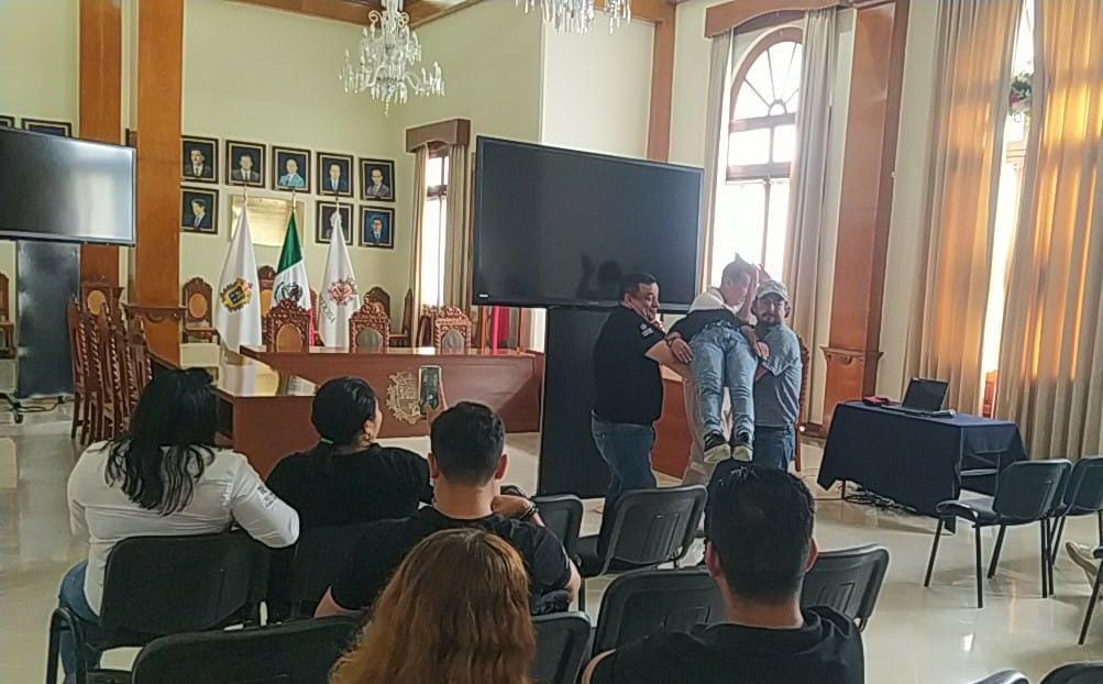 José Jorge Tress Martínez titular de esa área, afirmó que estas acciones son previas al simulacro, recordándoles los protocolos de evacuación, así como también hubo material teórico y se desarrollaron prácticas en este evento que se efectuó en el salón central de Palacio Municipal.