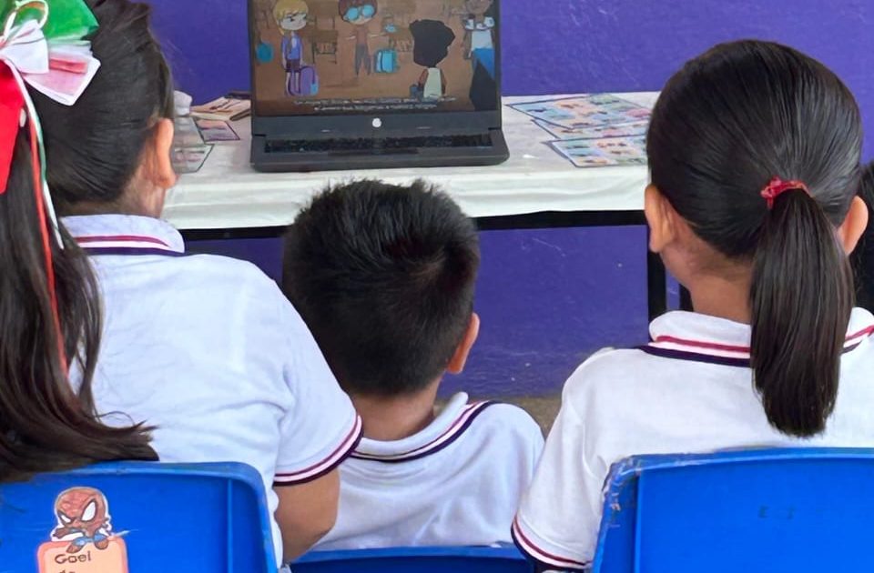 En el taller que se lleva a afecto bajo la supervisión de los profesores, se proyectan videos junto con actividades recreativas, con lo cual se busca que niñas y niños conozcan sobre sus derechos a través del juego.