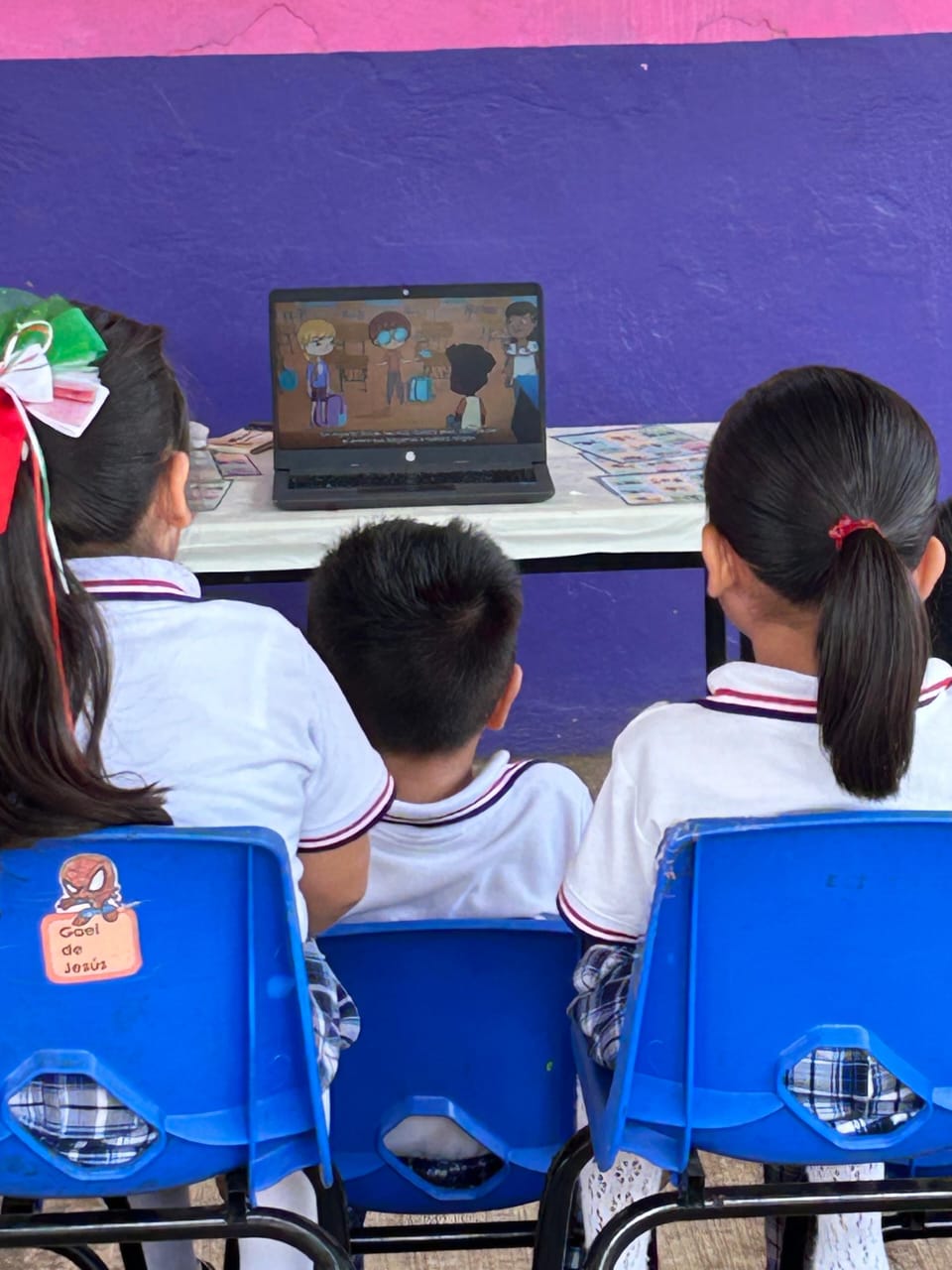 En el taller que se lleva a afecto bajo la supervisión de los profesores, se proyectan videos junto con actividades recreativas, con lo cual se busca que niñas y niños conozcan sobre sus derechos a través del juego.