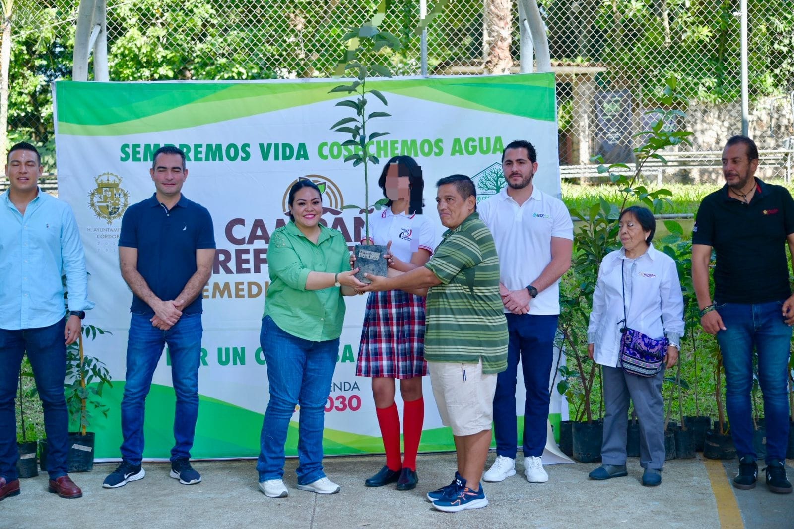H. Córdoba, Ver.- 18 de septiembre de 2024.- Con el compromiso permanente de trabajar en favor del medio ambiente, el Ayuntamiento de Córdoba a través de la Comisión de Fomento Forestal Ecología y Medio Ambiente y el área de Ecología en coadyuvancia con la empresa Tecno Urea, realizaron la entrega de arbolitos maderables y frutales, mismos que fueron sembrados por alumnos del Telebachillerato del Bosque en el parque lineal de la colonia Huilango 3000.