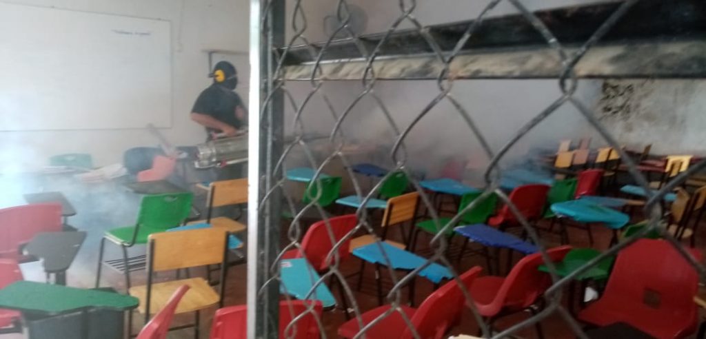 Jardines de niños, escuelas primarias, telesecundarias y bachilleratos formaron parte de esta jornada de fumigación que realizó el personal encargado, posterior al control larvario y eliminación de criaderos.