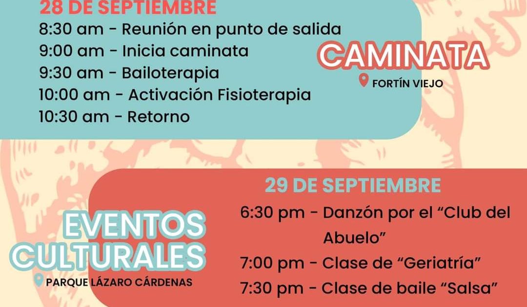 El domingo 29 se llevará a cabo la presentación del grupo de danzoneros del Club del Abuelo en la explanada del parque Lázaro Cárdenas, posterior a esto, habrá clases muestra de geriatría y de baile en el género salsa. Para finalizar el lunes 30 se realizará la feria de la salud en la explanada del parque Lázaro Cárdenas.