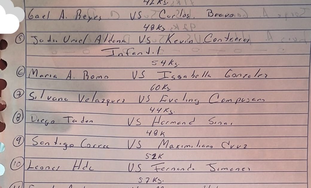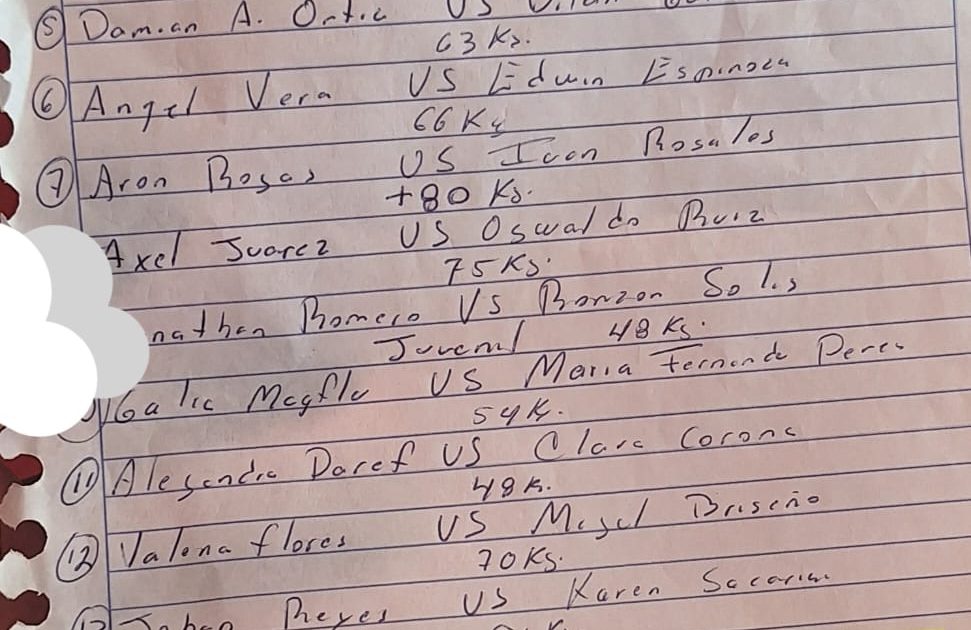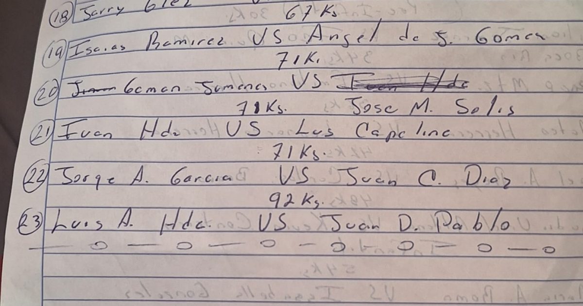 8.- El programa fue entregado en hojas de libreta y se pidió se tomará fotos ya que solo se contaba con 1 solo juego, el cual ni siquiera contaba con la información de que municipio era cada peleador.