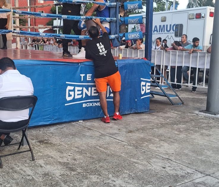 9.- Él Vicepresidente Julio Cesar Sanchez Cruz se presentó como entrenador en cada uno de los combates del municipio de Boca del Río sin un permiso adicional para ocupar dicha función su padre está como second en pantalones cortos (short) lo cual no está permitido