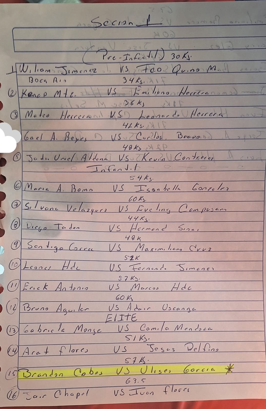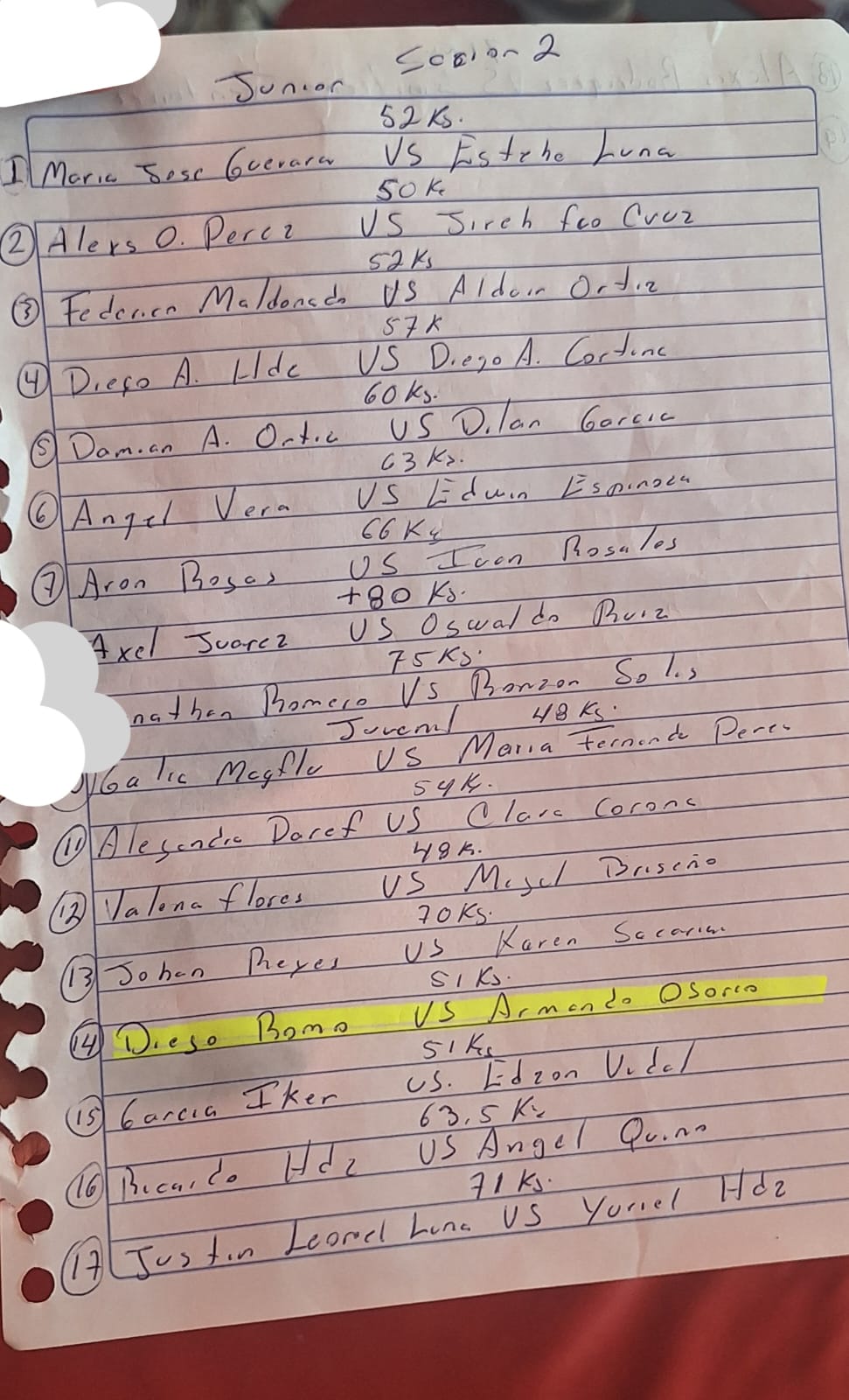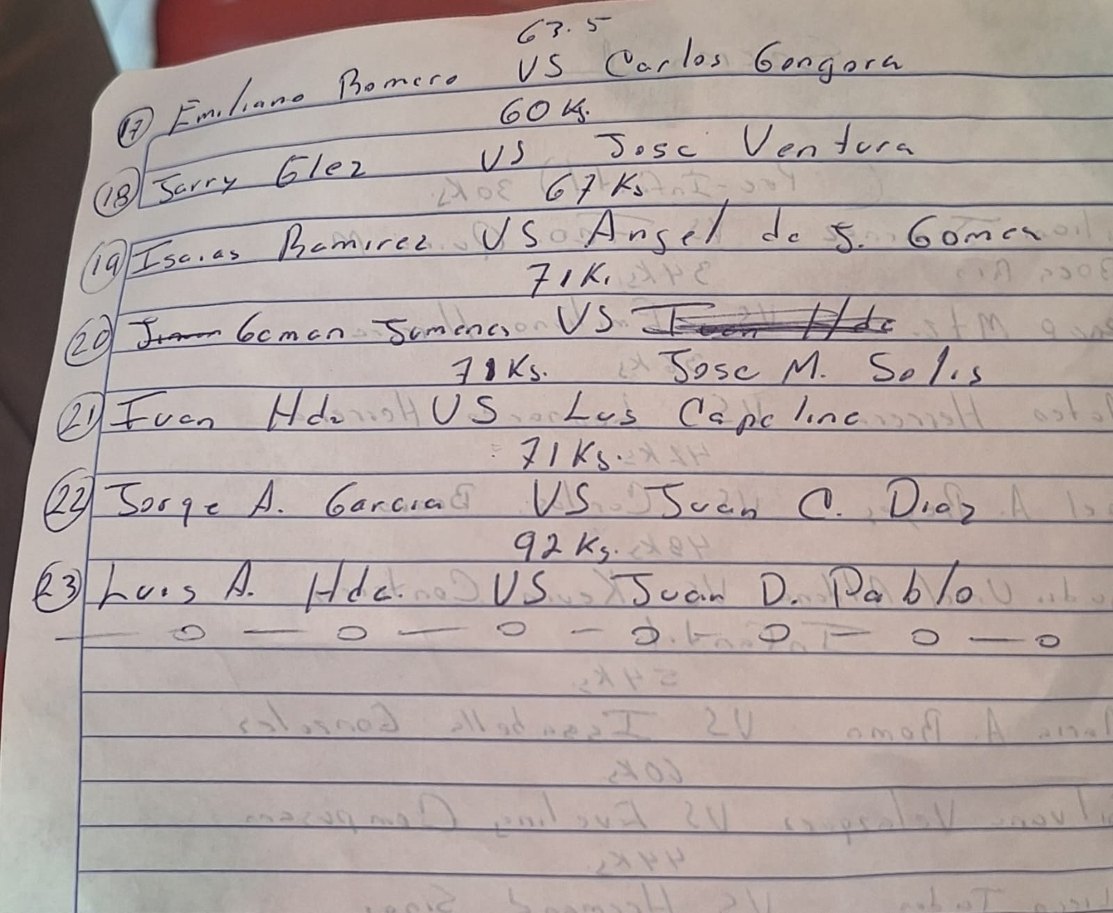 8.- El programa fue entregado en hojas de libreta y se pidió se tomará fotos ya que solo se contaba con 1 solo juego, el cual ni siquiera contaba con la información de que municipio era cada peleador.