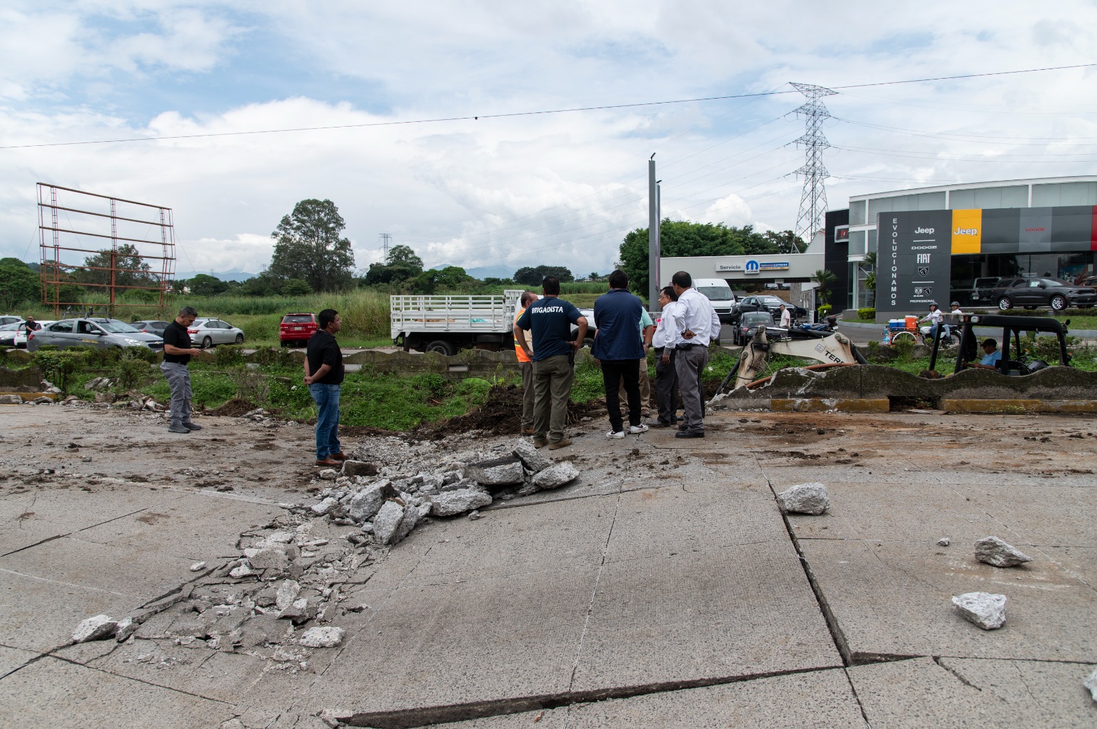 Abner Arturo Ceballos Lozano, director de Obras Públicas, explicó que la tubería subterránea dañada en la zona ha causado una separación entre el talud y el área del pavimento, lo que supone un riesgo potencial para la circulación de vehículos.