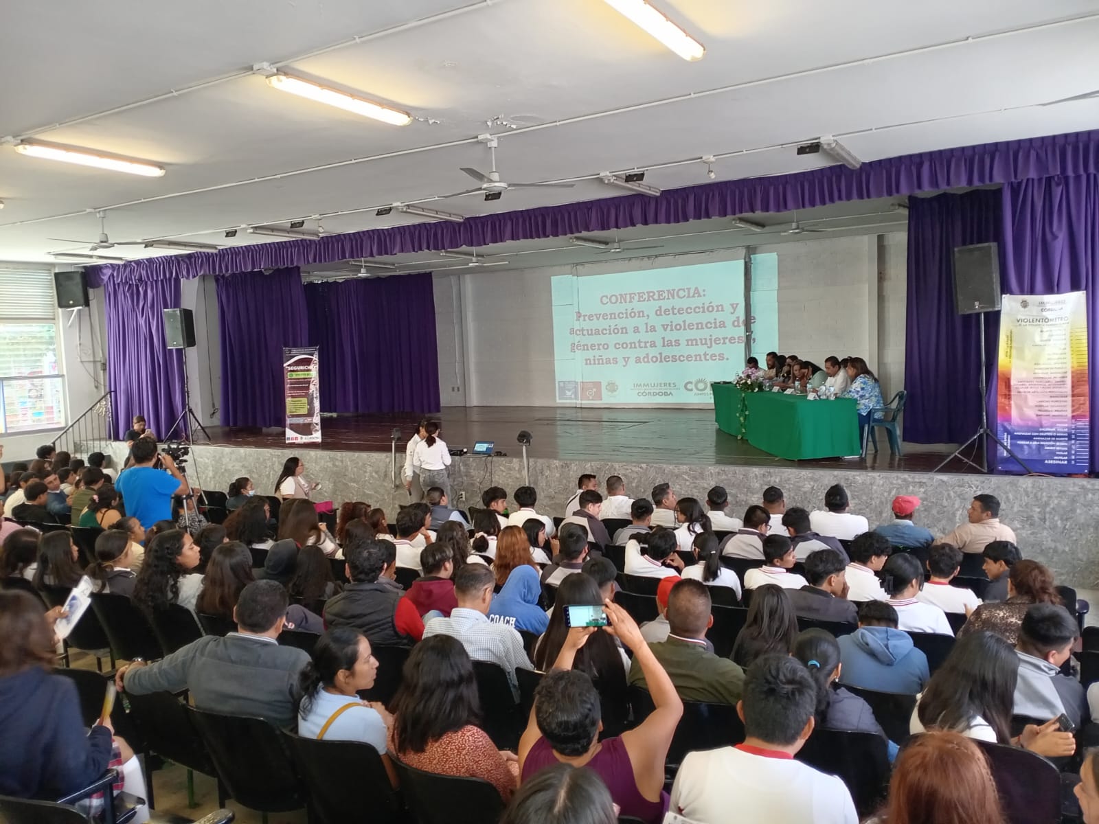 Córdoba, Ver; 10 de octubre de 2024.- Este jueves, alrededor de 300 estudiantes de 8 telebachilleratos de este municipio asistieron a la conferencia sobre Prevención, Detección y Actuación frente a la Violencia de Género contra Mujeres, Niñas y Adolescentes, promovida por el Instituto Municipal de las Mujeres.