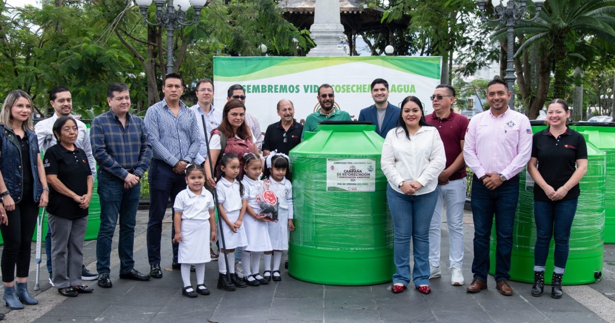 Por su parte, Gerardo García Gallardo, presidente de la Federación de Migrantes Veracruzanos en América del Norte, destacó que el programa busca garantizar el almacenamiento seguro de agua mediante la donación de tinacos fabricados con cuatro capas de material virgen.
