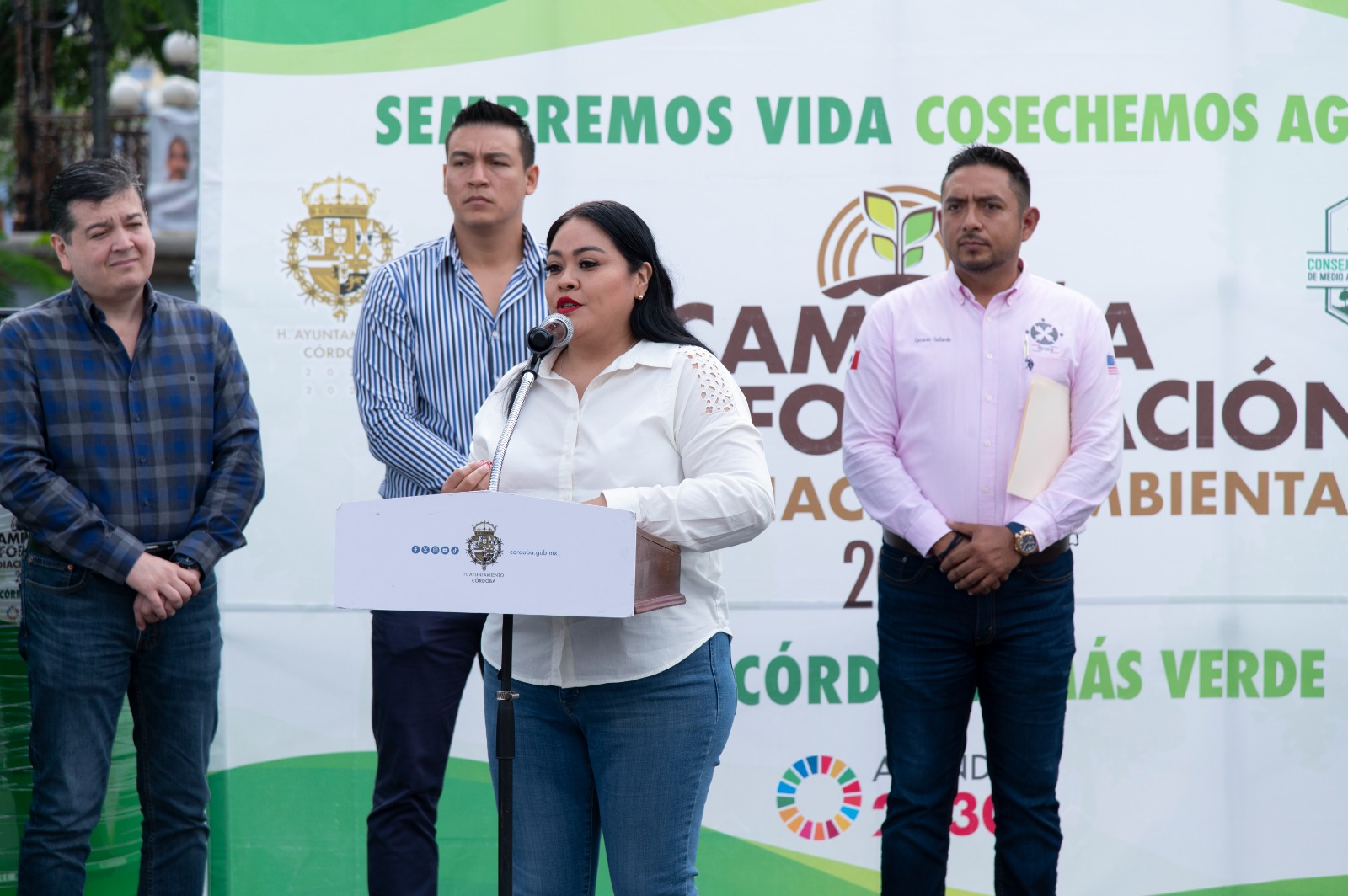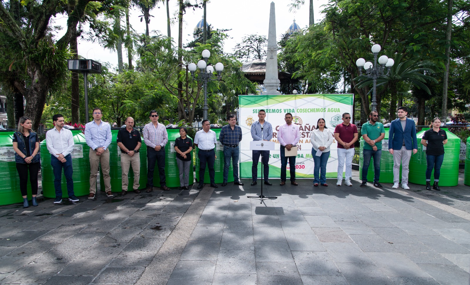 El evento se llevó a cabo en la explanada del Palacio Municipal, encabezado por Vania López González, síndica única y presidenta de la Comisión de Fomento Forestal, Ecología y Medio Ambiente, junto con ediles e integrantes del gobierno municipal.