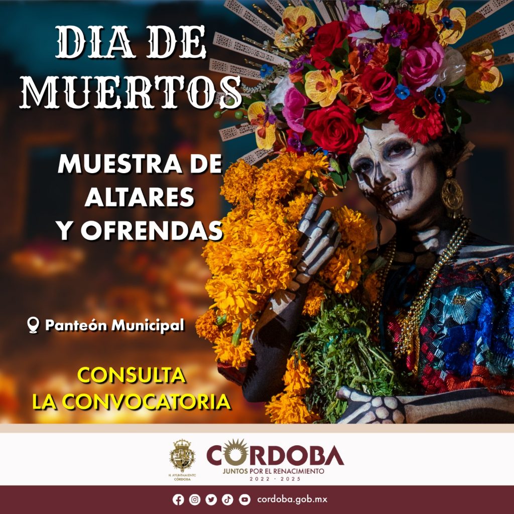 Córdoba, Ver., 15 de octubre de 2024.- Como parte de las actividades alusivas al Día de Muertos, la Jefatura de Panteones de la Dirección de Servicios Municipales del Ayuntamiento de Córdoba convoca a las instituciones educativas públicas y privadas, así como a asociaciones, comercios, familias y al público en general de la zona cercana al cementerio municipal, a participar en la Muestra de Altares y Ofrendas del Día de Muertos, que se llevará a cabo en el interior del Panteón Principal.