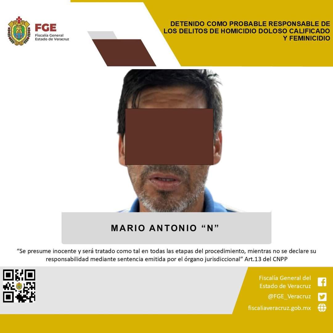 DETENIDO COMO PROBABLE RESPONSABLE DE LOS DELITOS DE HOMICIDIO DOLOSO CALIFICADO Y FEMINICIDIO