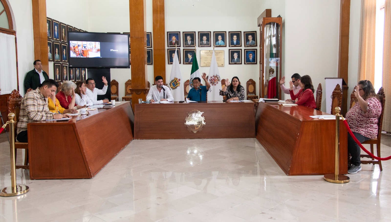 Estuvieron presentes: el alcalde Juan Martínez Flores, la síndica única Vania López González, el regidor primero Daniel Vázquez Hernández, la regidora segunda Isamar Balderas Flores, la regidora tercera Georgina Andrea Aguilar Sánchez, la regidora cuarta María Luisa Martínez Ramírez, el regidor quinto Jonathan Francisco Rosas Blanco, el regidor sexto Sergio Armando de la Llave Migoni, la regidora séptima Olga Leticia Luz López, la regidora décima María del Carmen Aguilar Mendoza y, de manera virtual, el regidor octavo Erick Alberto Gasca Morales.