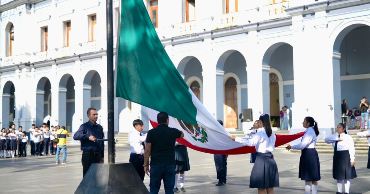 La ceremonia, conducida por la maestra Artemia Montiel Contreras, comenzó con el izamiento de la Bandera Nacional, a cargo del regidor sexto, Sergio Armando de la Llave Migoni. Posteriormente, la alumna Dulce Camila Rodríguez Ávila dirigió el Juramento a la Bandera, mientras el profesor Josafat Martínez Rodríguez, acompañado por la banda municipal, interpretó los himnos Nacional y de Veracruz.