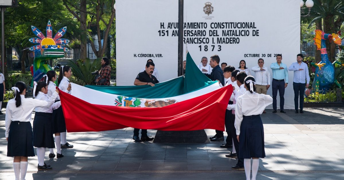Córdoba, Ver., 30 de octubre de 2024 – El Ayuntamiento de Córdoba, en colaboración con la escuela telesecundaria Francisco I. Madero, celebró este miércoles el 151° aniversario del natalicio de Francisco I. Madero con un acto cívico en la explanada del parque 21 de Mayo.