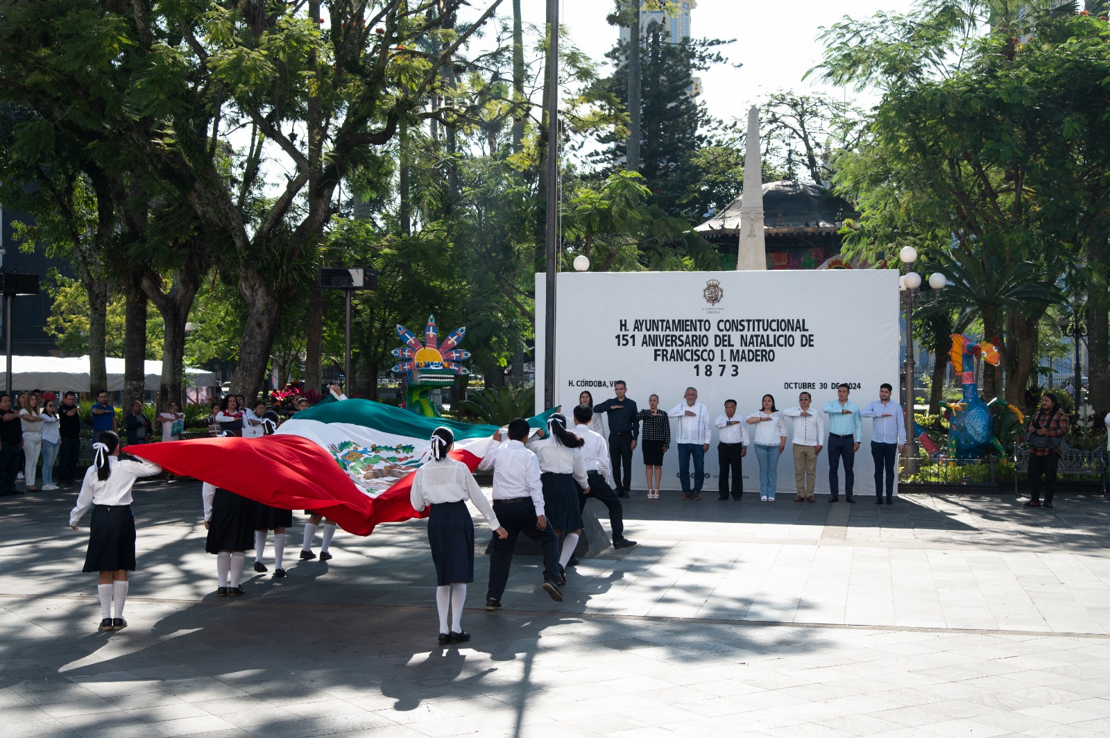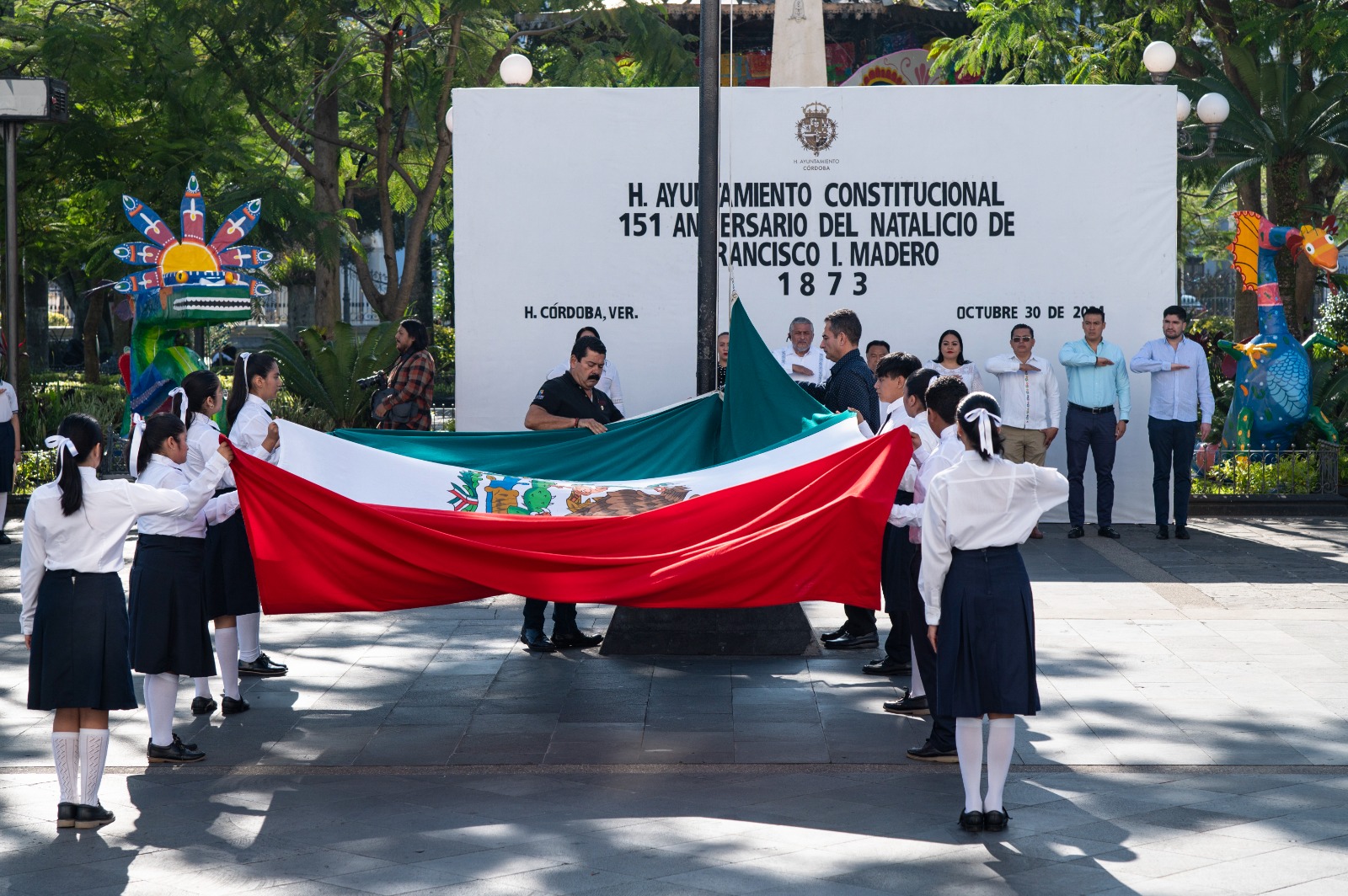 Córdoba, Ver., 30 de octubre de 2024 – El Ayuntamiento de Córdoba, en colaboración con la escuela telesecundaria Francisco I. Madero, celebró este miércoles el 151° aniversario del natalicio de Francisco I. Madero con un acto cívico en la explanada del parque 21 de Mayo.