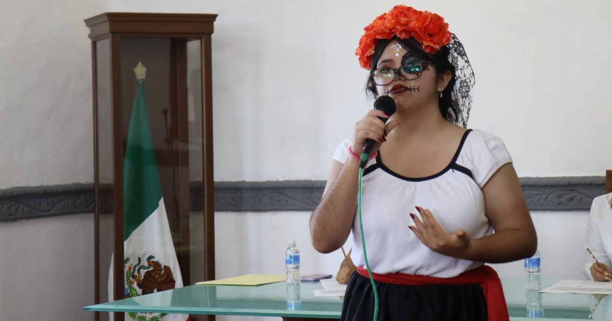 30 de Octubre, Fortín, Ver.- Con el objetivo de concientizar y preservar nuestras tradiciones, en especial la de Día de Muertos, 10 participantes de diversas escuelas como CETIS 143, UPV y Anáhuac se dieron cita para el Concurso de Oratoria “El Rescate de nuestras tradiciones a través de la voz de los jóvenes”.