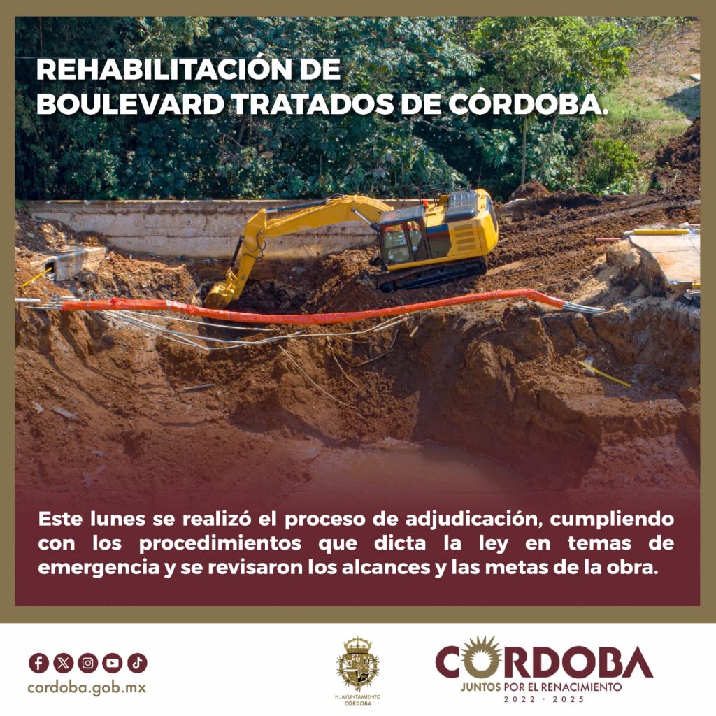 Córdoba, Ver., 05 de noviembre de 2024.- Este lunes inició la contratación de los trabajos de rehabilitación en el boulevard Tratados de Córdoba, luego de que el Ayuntamiento de Córdoba realizara los procedimientos administrativos en el proceso de licitación que la Ley de Obras Públicas y Servicios Relacionados con las mismas del Estado de Veracruz de Ignacio de la Llave, marca en temas de emergencia.