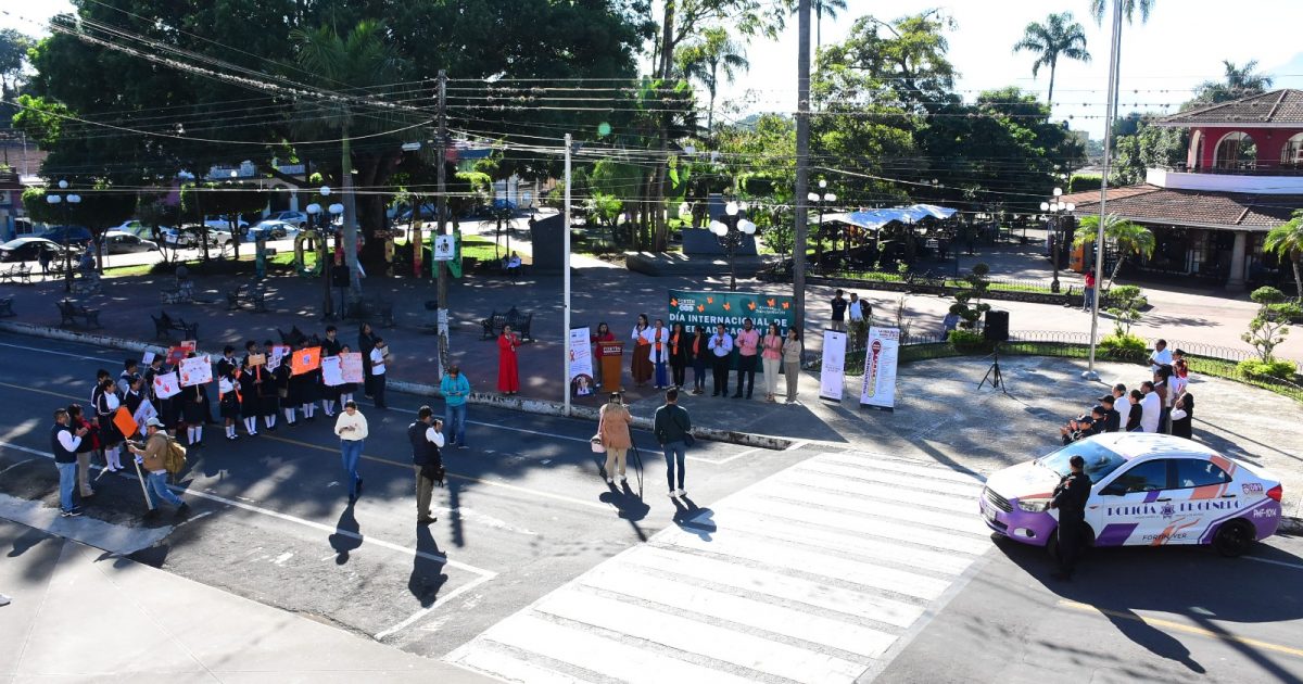 La mañana de este lunes, se llevó a cabo un acto protocolario frente al palacio municipal, organizado por el Instituto de la Mujer, en donde se reunieron las autoridades municipales y las instituciones educativas, Telesecundaria Antonio Ruiz Galindo y el Formativo Serradel, las cuales aportaron carteles alusivos al tema sobre la erradicación de la violencia contra la mujer y las niñas.