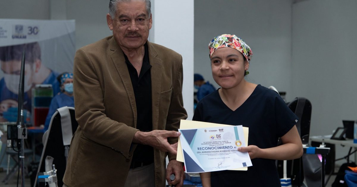 Este viernes en las instalaciones del DIF se llevó a cabo la clausura de los trabajos por parte del director de Desarrollo Social, Daniel Hernández del Ángel en representación del alcalde Juan Martínez Flores, María Elena Yunes Choperena directora del DIF, Néstor Mejía Becerril, coordinador médico del DIF y de Karla Mayela Avelar Juárez representante de la Fundación UNAM y especialista en patología oral.