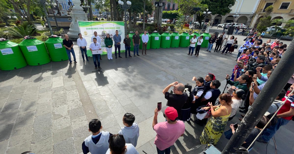 La síndica Vania López González expuso que en el año se han entregado 27 tinacos de 1,200 litros y añadió que con este tipo de acciones se busca el cuidado del medio ambiente, tarea que promueve la Comisión de Fomento Forestal.