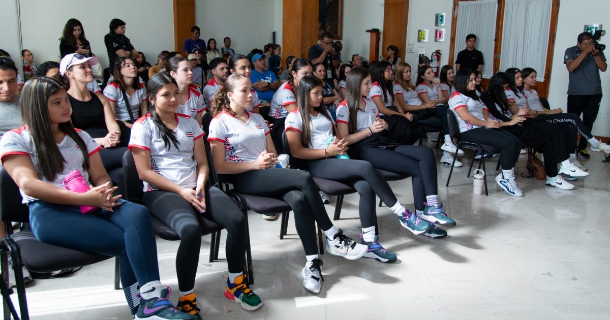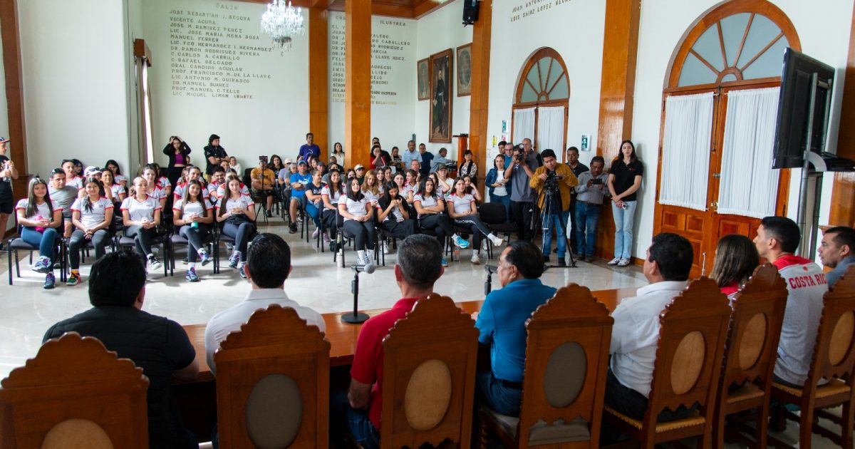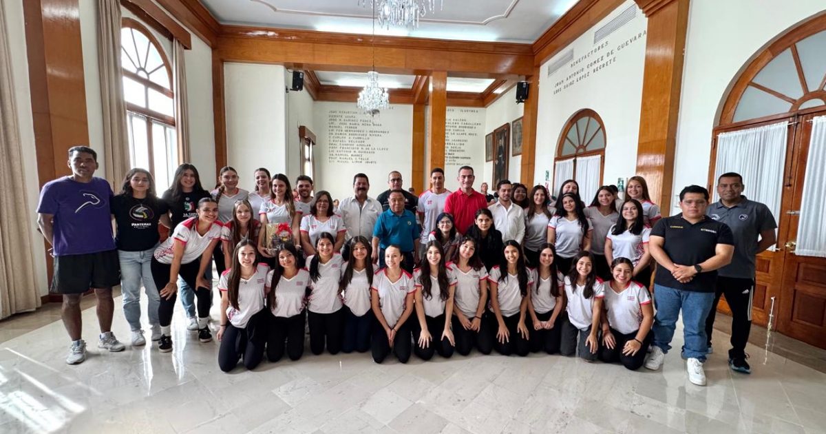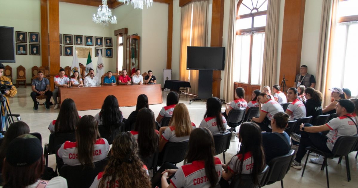 Córdoba Ver. 19 de diciembre de 2024. – Autoridades municipales encabezadas por el alcalde Juan Martínez Flores recibieron esta mañana en el Salón Central de Palacio Municipal a los 40 integrantes de la Delegación de Voleibol de la República de Costa Rica quienes llegaron para participar en el evento Deportivo “Sexta Copa Panteras” a celebrarse en la Arena Córdoba del 20 al 22 de diciembre.