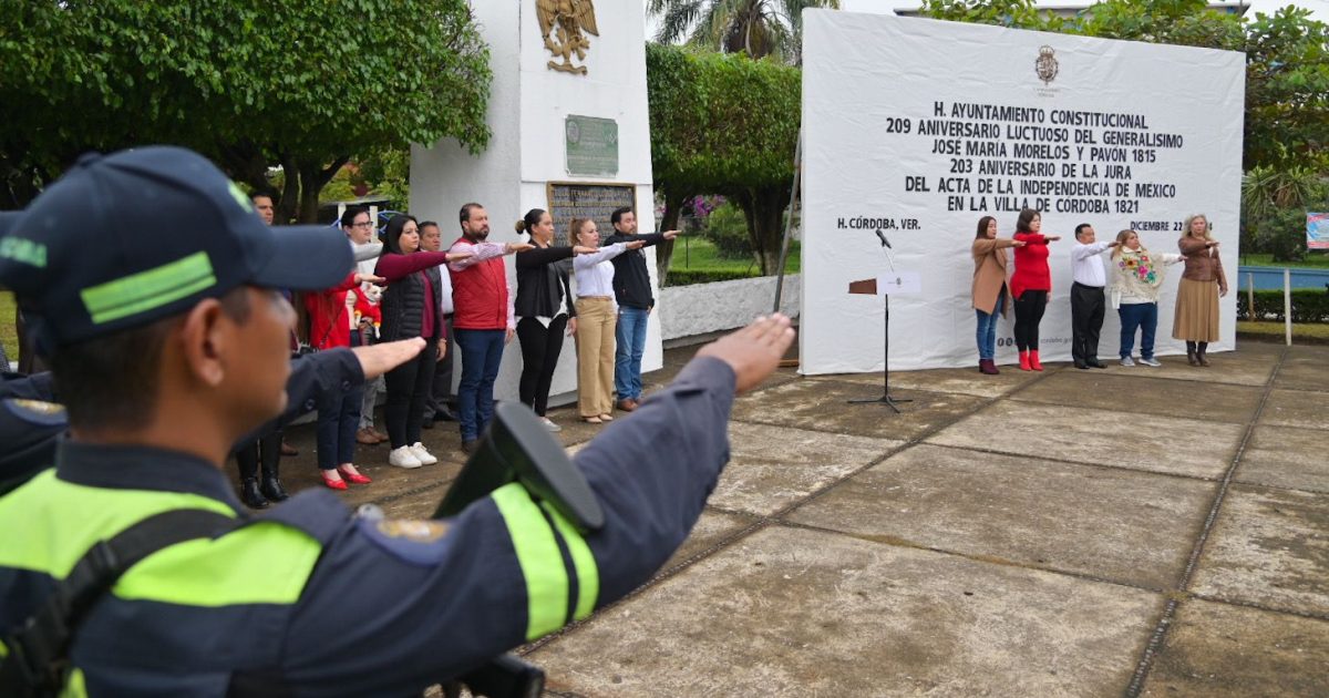 Córdoba, Ver., 22 de diciembre de 2024.- Con un acto cívico encabezado por el alcalde Juan Martínez Flores, las autoridades municipales conmemoraron el 209 aniversario luctuoso del Generalísimo José María Morelos y Pavón en 1815 y el 203 aniversario de la Jura del acta de Independencia de México en la Villa de Córdoba en 1821.