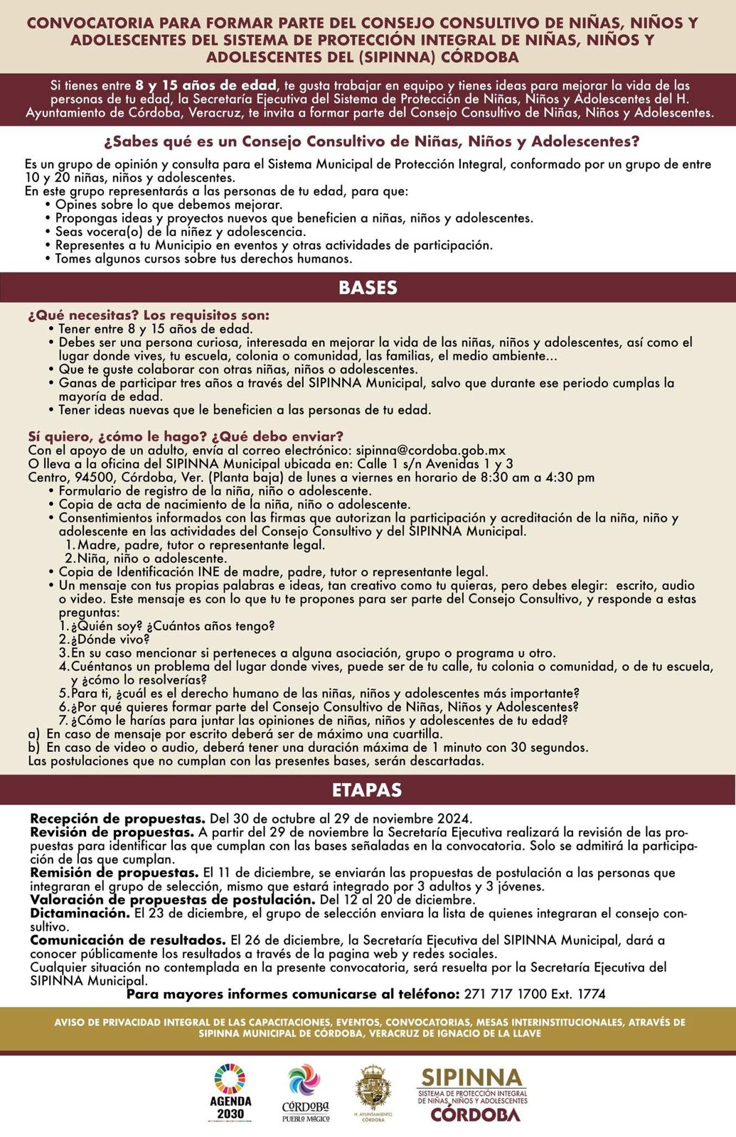 La Secretaría Ejecutiva del Sistema de Protección Integral de Niñas, Niños y Adolescentes de Córdoba, Veracruz; se complace en anunciar a las niñas, niños y adolescentes aceptados para formar parte…