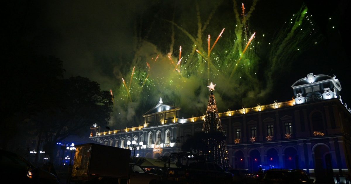 Una lluvia de colores iluminó el cielo con los imponentes fuegos artificiales que alegraron la noche, el Palacio Municipal cobró vida con este espectáculo en donde los asistentes disfrutaron del momento.