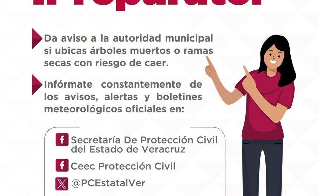 Se exhorta a la ciudadanía a informarse constantemente de avisos alertas y boletines en meteorológicos oficiales, como la Secretaria de Protección Civil del Estado de Veracruz.
