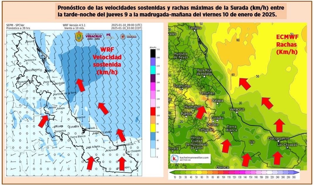 Jorge Tress Martínez titular del área, detalló que el pronóstico indica la probabilidad de una Surada con rachas máximas de 55 a 70 km/h en la zona del valle de Perote y de 45 a 60 km/h, en las regiones de costa Norte, Orizaba y entre Jesús Carranza-Acayucan, fenómenos que por sucesos anteriores se sabe terminan afectando a Córdoba.