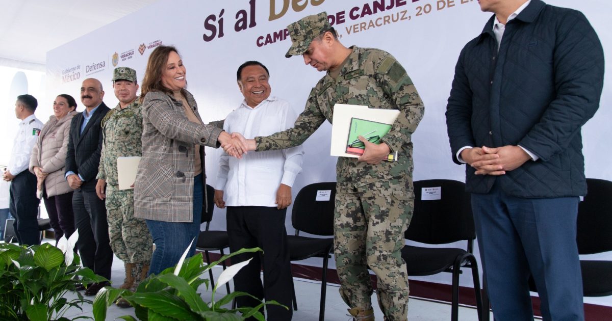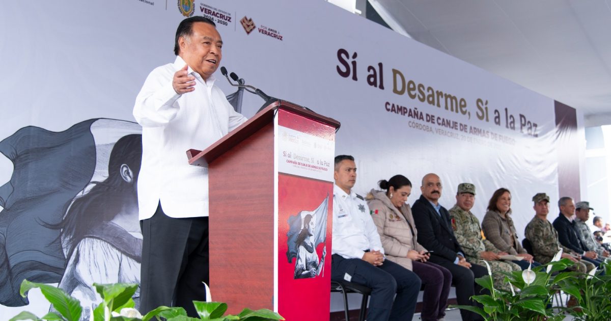 Córdoba Ver., 20 de enero de 2025.- Como parte de las acciones implementadas por la presidenta de México Claudia Sheinbaum para reducir la posesión ilegal y uso de armas de fuego, esta mañana la gobernadora de Veracruz Rocío Nahle García y el alcalde Juan Martínez Flores, pusieron en marcha la campaña estatal de canje de armas “Sí al desarme, sí a la paz”.