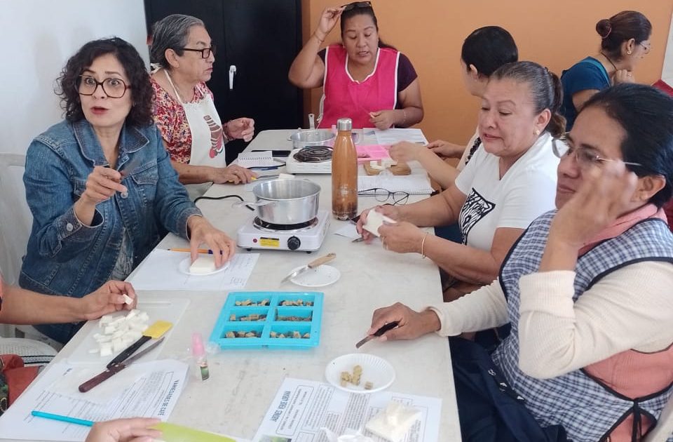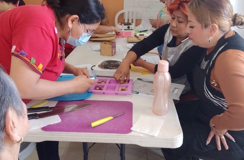 En el taller se detalló que para la elaboración de los jabones el producto básico es la glicerina, base ya sea blanca o transparente y se obtiene a través de un proceso natural, se ocupan algunas esencias, algunos colorantes y no se requiere tanta inversión.