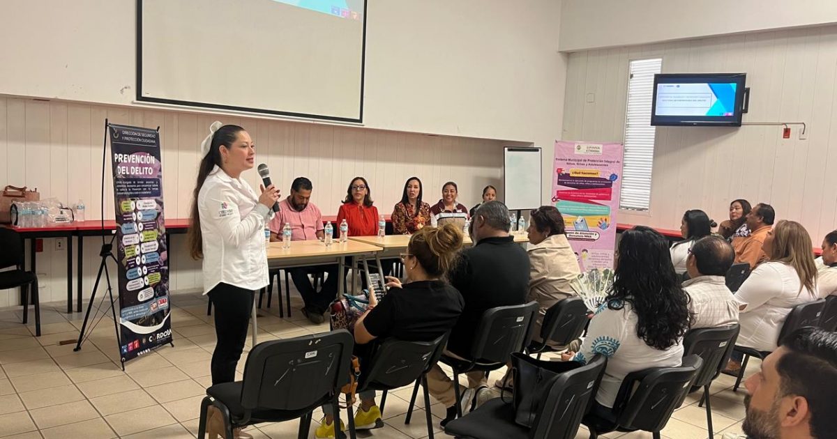 Celia Camelia Hernández, secretaria ejecutiva del SIPINNA Municipal, comentó que en vías de fortalecer al cuidado de los NNA, personal docente, directores, supervisores se congregaron con la finalidad de adquirir conocimientos, enfocadas a temas como: maltrato infantil, omisión de cuidados, protocolos de acoso escolar, número de emergencia, violencia, así como recomendaciones por parte de seguridad municipal.