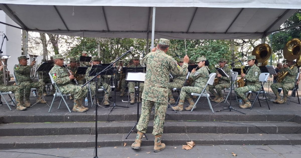 Continuando con su gira musical en el presente año, la Banda de Música de la VI Región Militar (con sede en la Ciudad de Puebla), se presentó nuevamente la tarde de hoy en el Parque Juárez de la capital del estado (Xalapa,Ver.) un gran escenario, acompañados de las botargas oficiales del Ejército y Guardia Nacional.