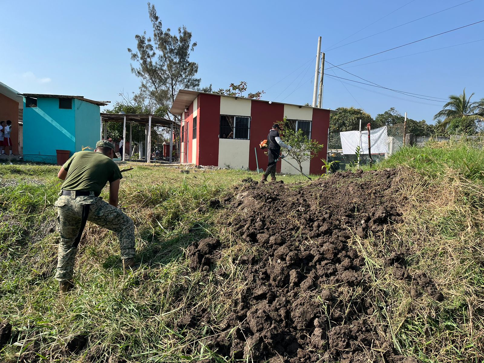 Elementos de la Secretaría de la Defensa Nacional, realizan actividades de labor social, en plantel educativo en el municipio de Veracruz, Ver.
