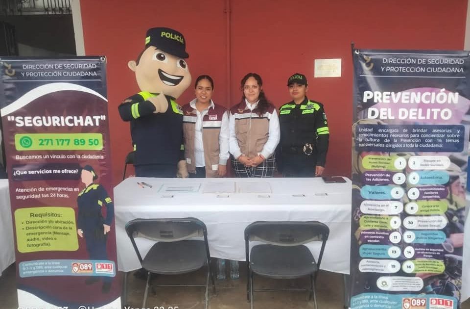 Por instrucciones del presidente Juan Martínez Flores, la Jefatura de Prevención del Delito, da cabal cumplimiento al efectuar acciones que garanticen la seguridad de niños y jóvenes, además de coadyuvar con los municipios aledaños para la construcción de la paz y seguridad de la región.