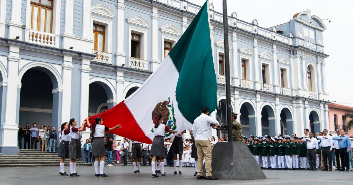 El programa a cargo de la 26/a zona militar El Lencero Veracruz, dio inicio con los honores al símbolo patrio, escoltada por estudiantes del COBAEV plantel 12, quienes hicieron la entrega de la Bandera Nacional al regidor primero del Ayuntamiento, Daniel Vázquez Hernández, para el izamiento a toda asta.