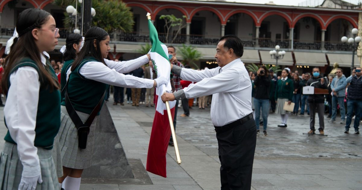 El alcalde de Córdoba Juan Martínez Flores efectuó el izamiento de la enseña nacional, mientras que la escuela Telesecundaria Vicente Guerrero fue quien llevó el acto cívico convocados por la coordinación de Educación, Cultura y Deporte.