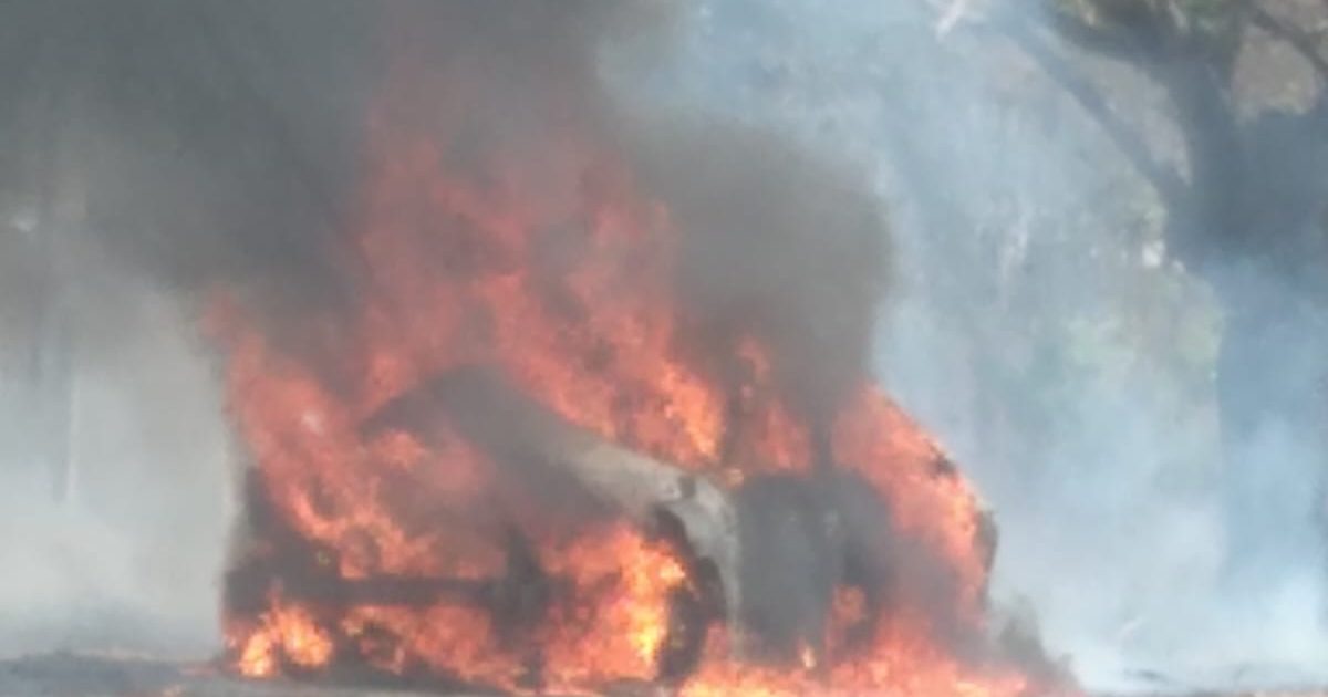 Cuitláhuac, Ver.- accidente registrado la mañana de este martes sobre la carretera federal Cuitláhuac-La Tinaja, donde un vehículo terminó como pérdida total, luego de incendiarse tras chocar contra una camioneta, que terminó metros adelante.