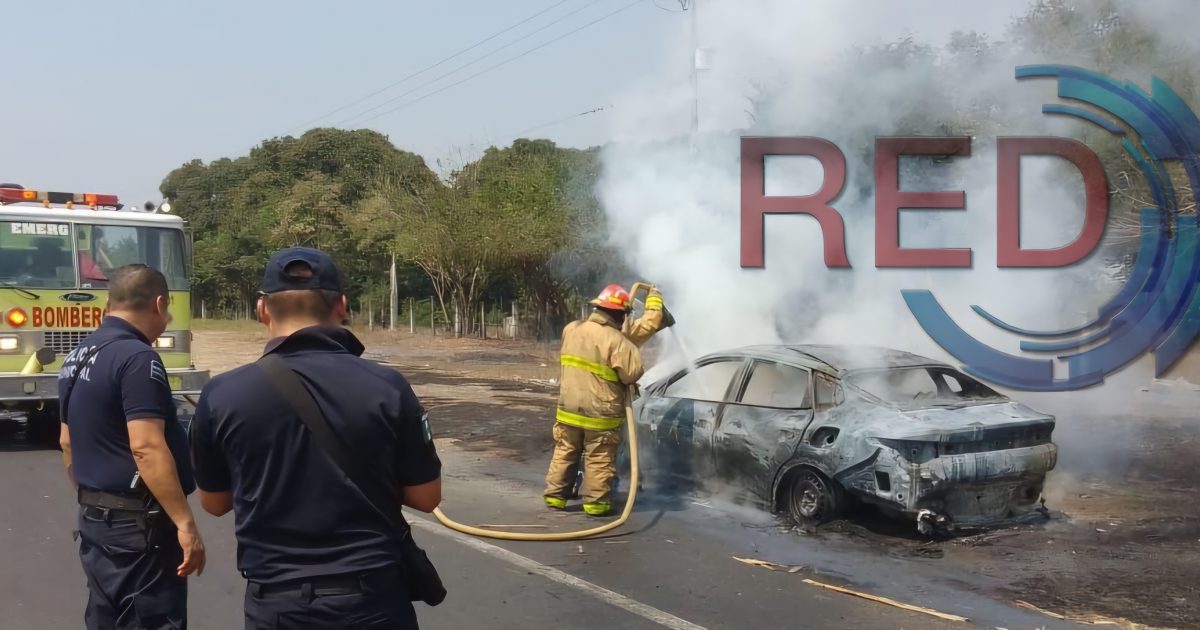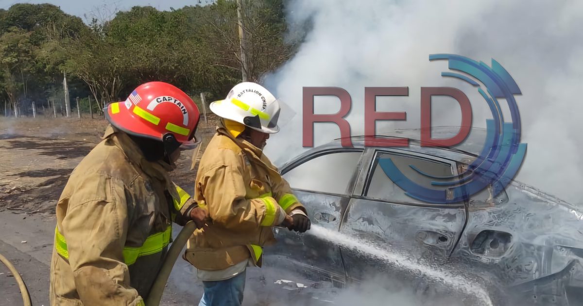 Minutos mas tarde arribaron bomberos regionales de Cuitláhuac quienes sofocaron el incendio del vehículo y de la hierba que se incendió y las llamas amenazaban con extenderse más.
