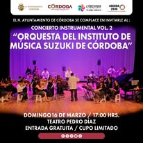 Córdoba, Ver., 14 de marzo de 2024.- Ante la gran aceptación que tuvo el pasado concierto de la Orquesta del Instituto Suzuki de Córdoba y porque la ciudadanía cordobesa lo…